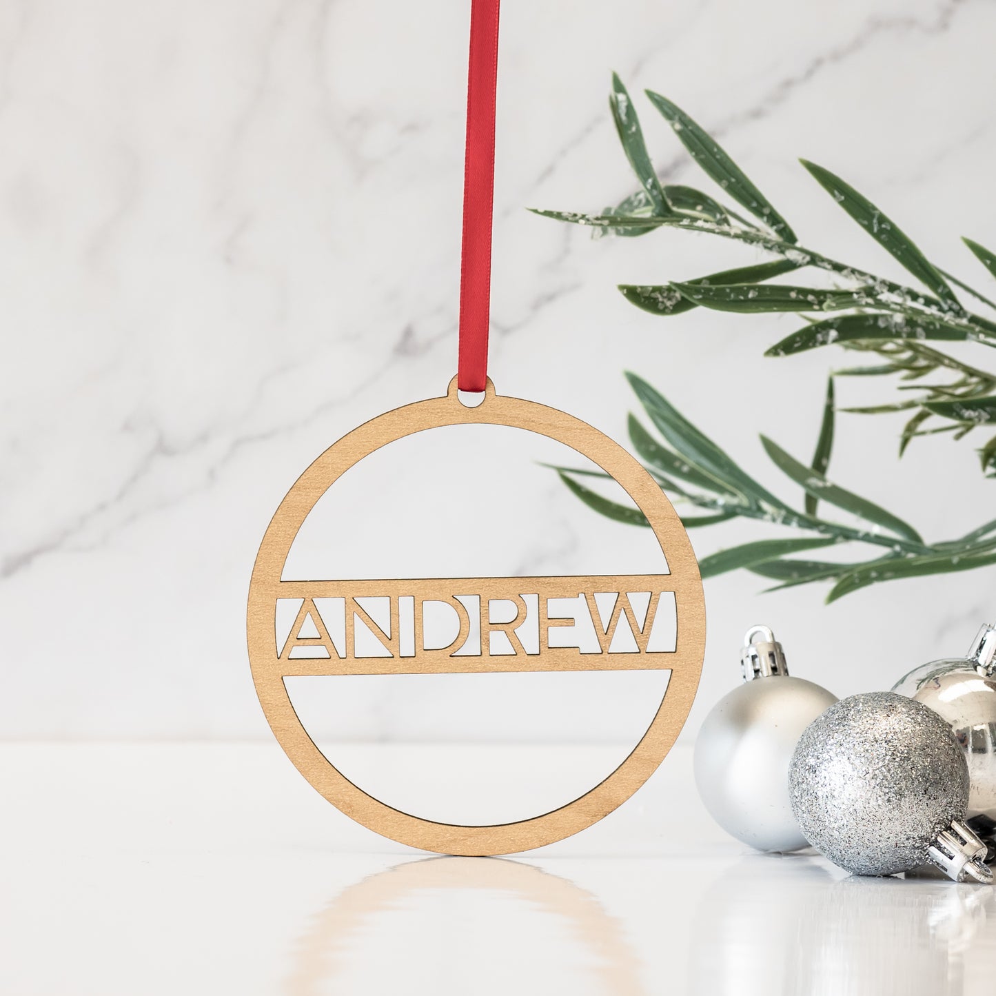 A new take on our "O.G." ornament. Each name is laser cut out of this circular wooden ornament. Please include the name(s) to be laser cut in the custom note section.