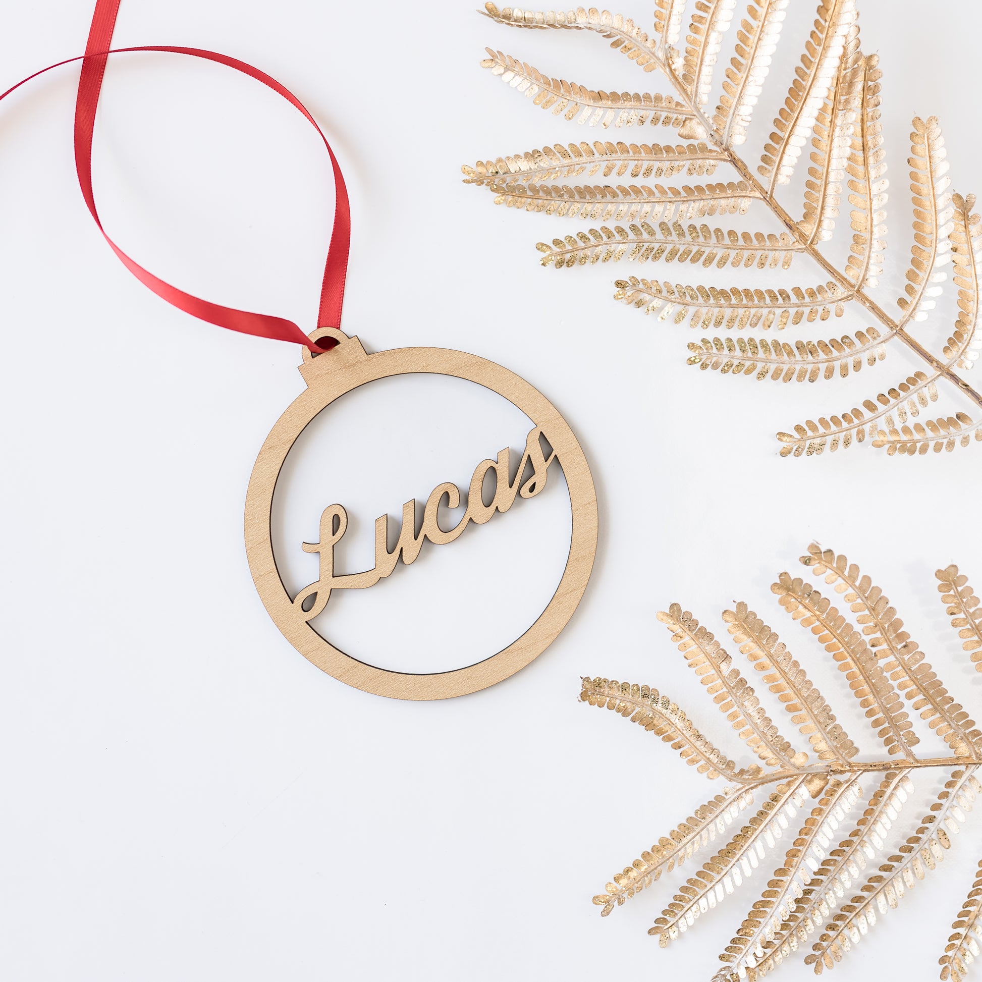 The original Giftii/Project Carve ornament! This ornament was the first and only style we cut in our first year and has remained a popular choice! Each name is custom laser cut out of a circle. Please include name(s) in the custom note section.